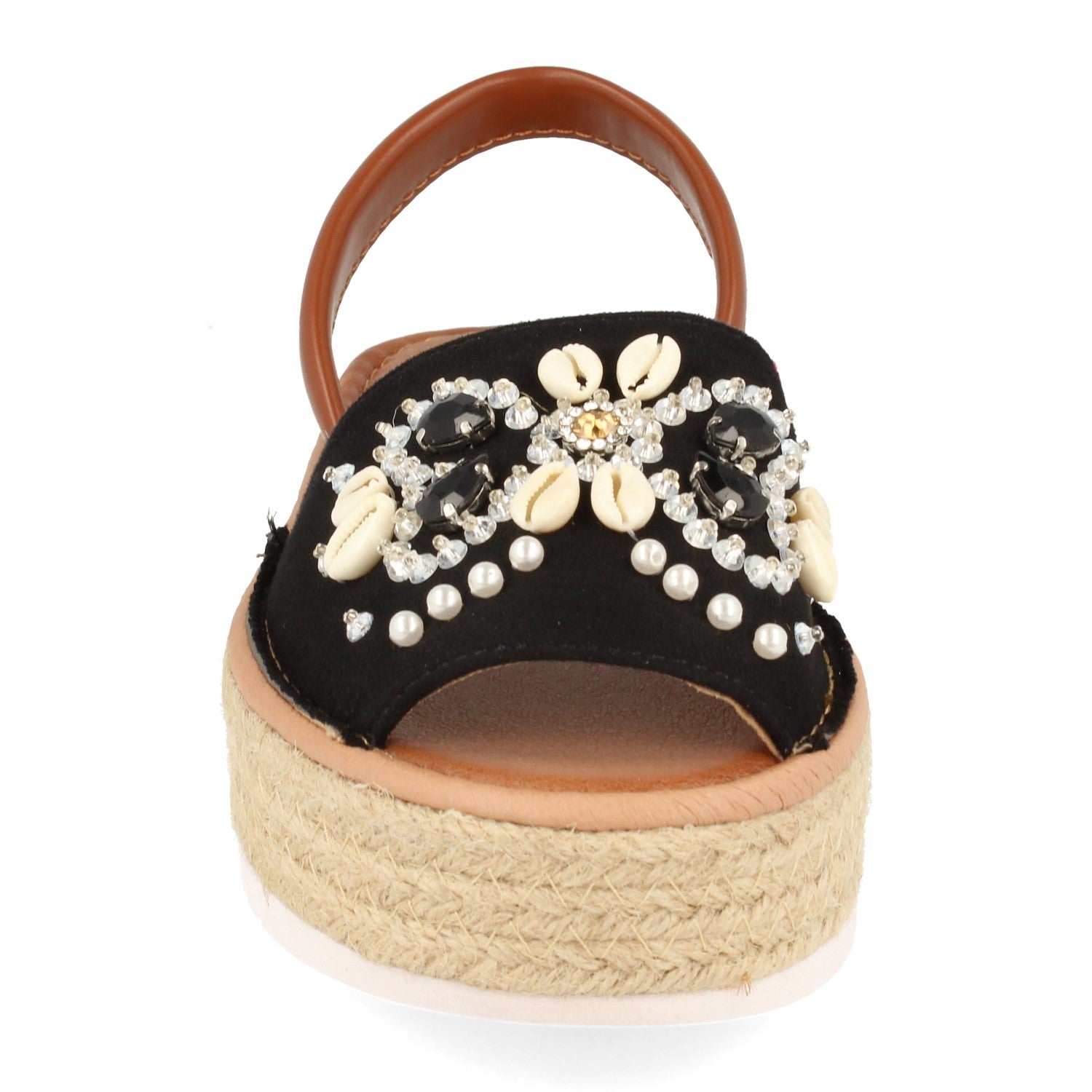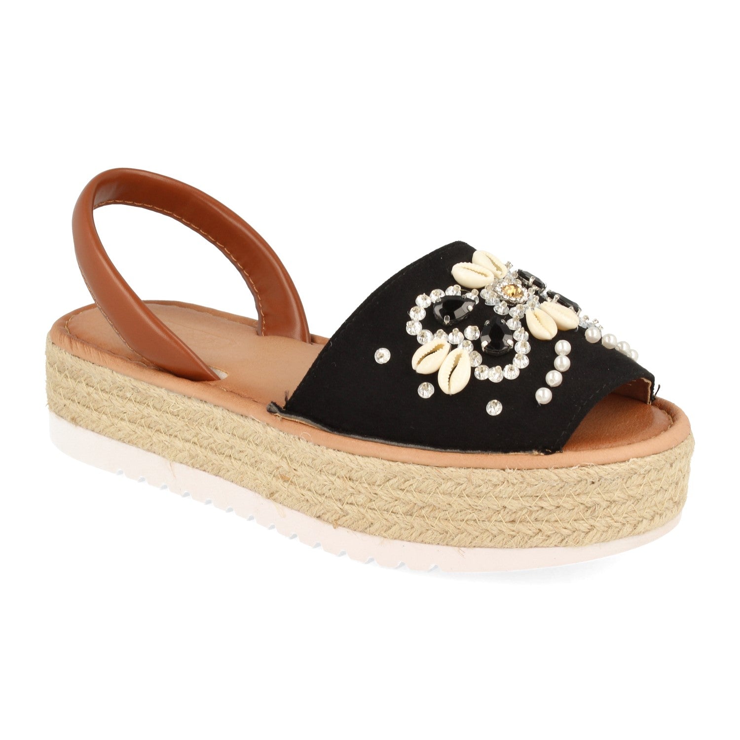Sandalia de Plataforma para Mujer con Yute Pala Ancha Adornada con Conchas y Piedras Brillantes Talon Abierto Primavera Verano 2020
