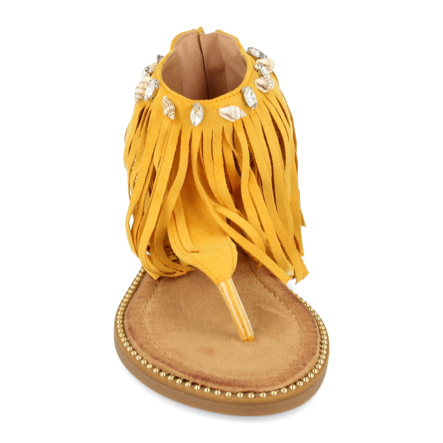 Sandalia Plana de Esclava con Talón Cubierto Flecos Adorno de Conchas Marinas Tachuelas y Cremallera. Primavera Verano 2020.