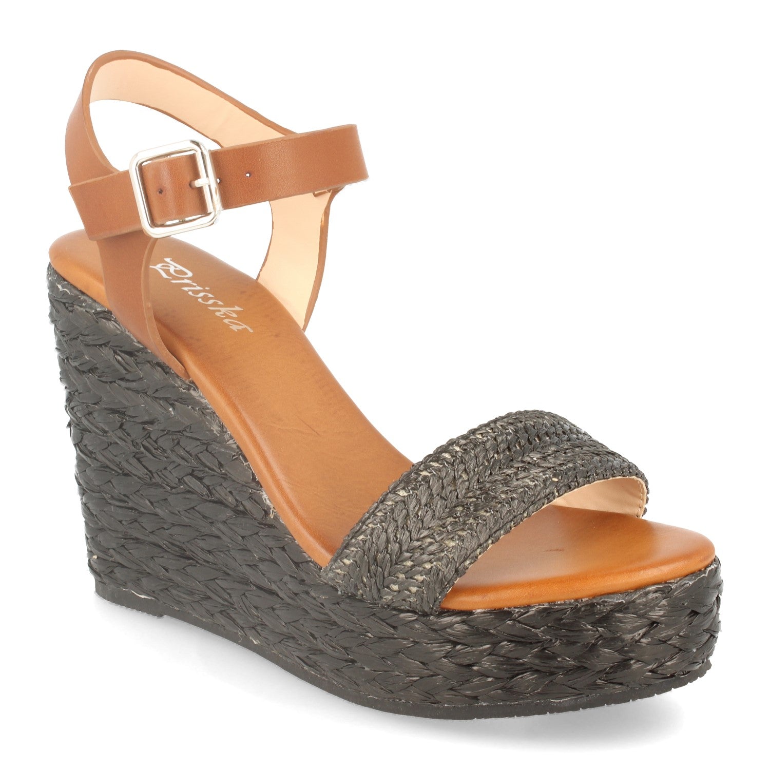 Sandalia de Cuña con Rafia Estilo Ankle Strap Pala Fina Piso de Crepelina y Cierre de Hebilla Primavera Verano 2020