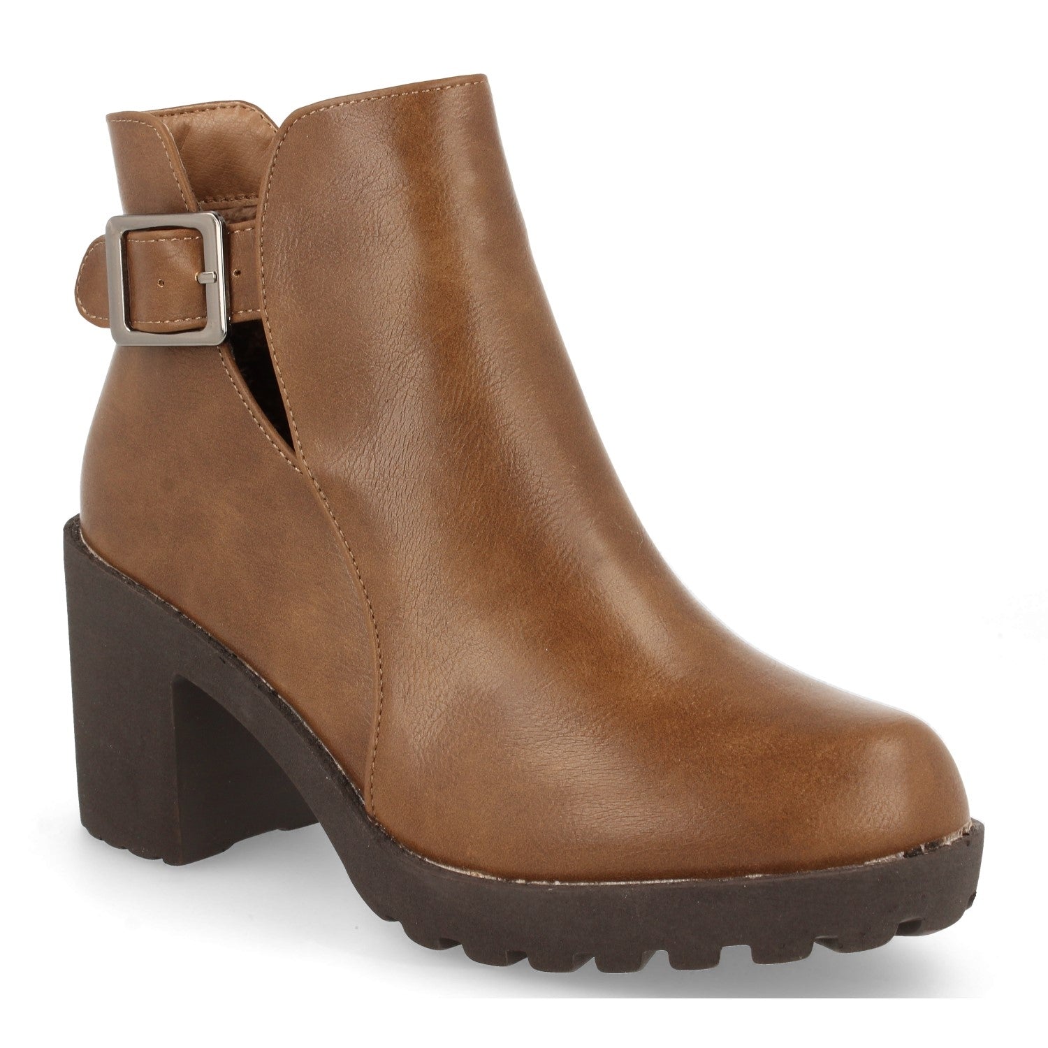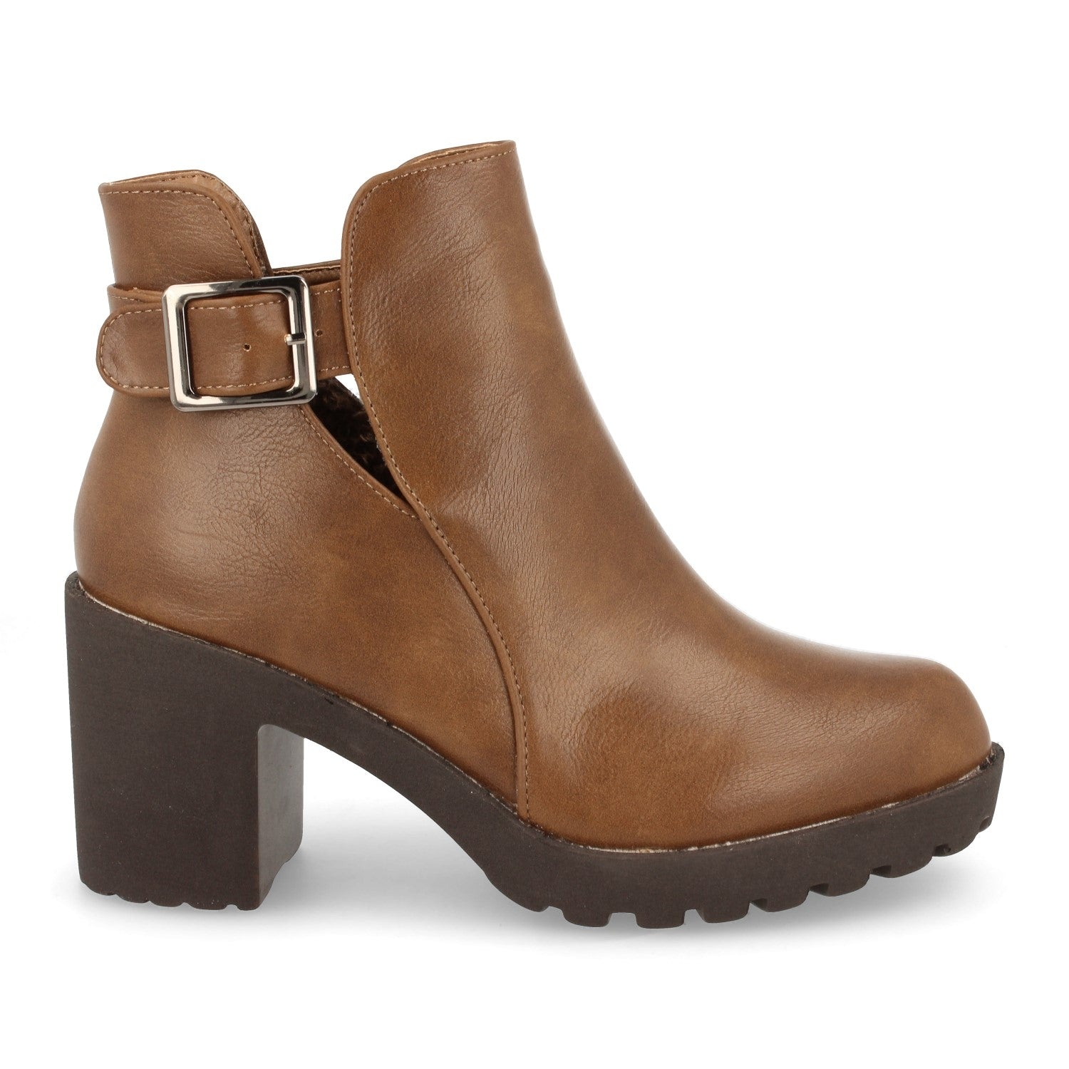 Botín de mujer de tacón con plataforma con hebilla y abierto en el tobillo. Otoño invierno 2019