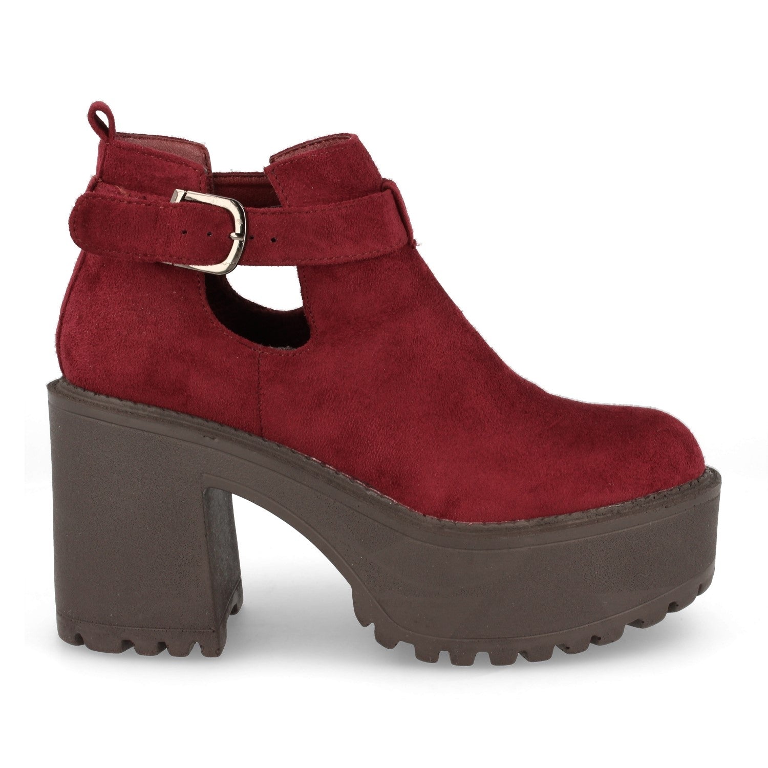 Botín de mujer de tacón con plataforma con hebilla y abierto en el tobillo. Otoño invierno 2019