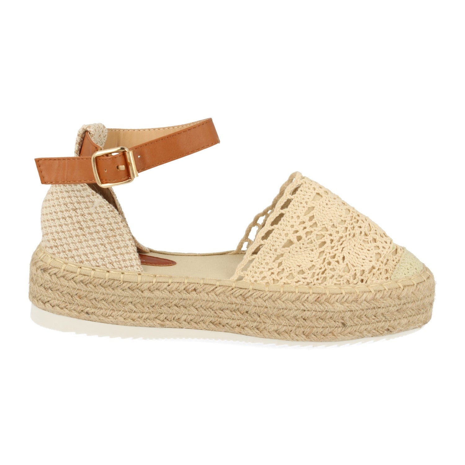 Sandalia de Plataforma con Yute para Mujer con Pala Cerrada de Rafia y Cierre de Hebilla en el Tobillo Primavera Verano 2020