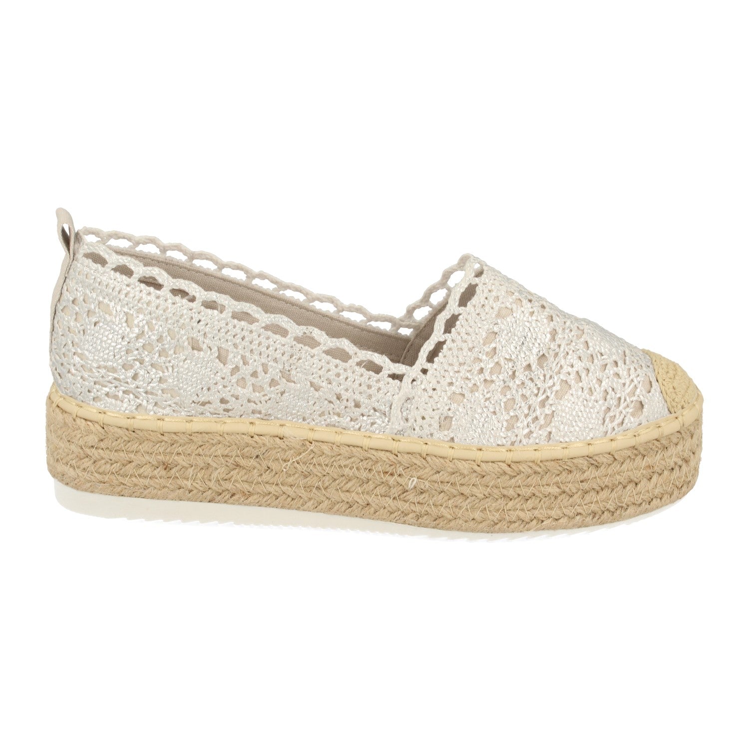 Alpargata de Plataforma con Yute Parte Superior de Punto Punta Crochet y Piso de Eva Primavera Verano 2020
