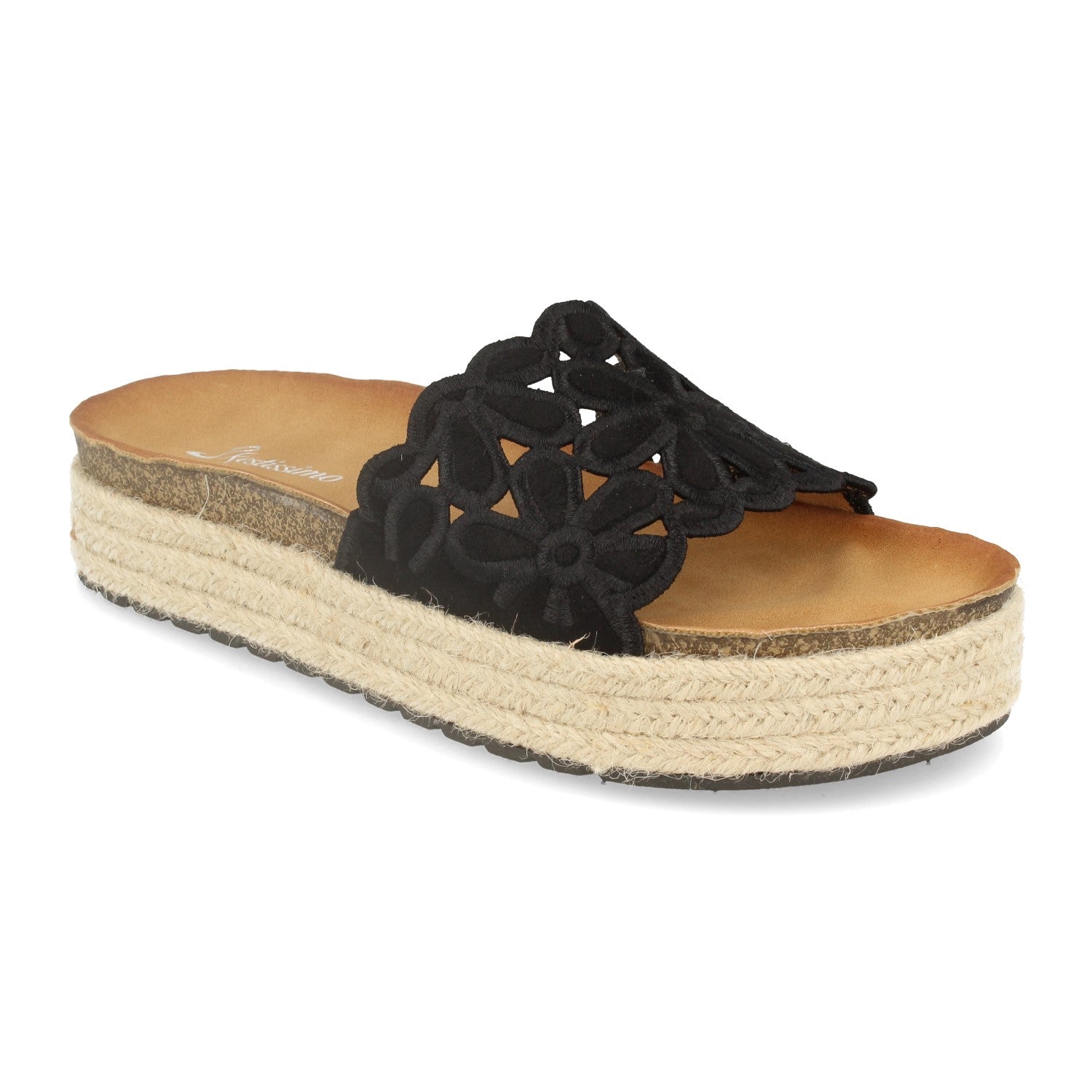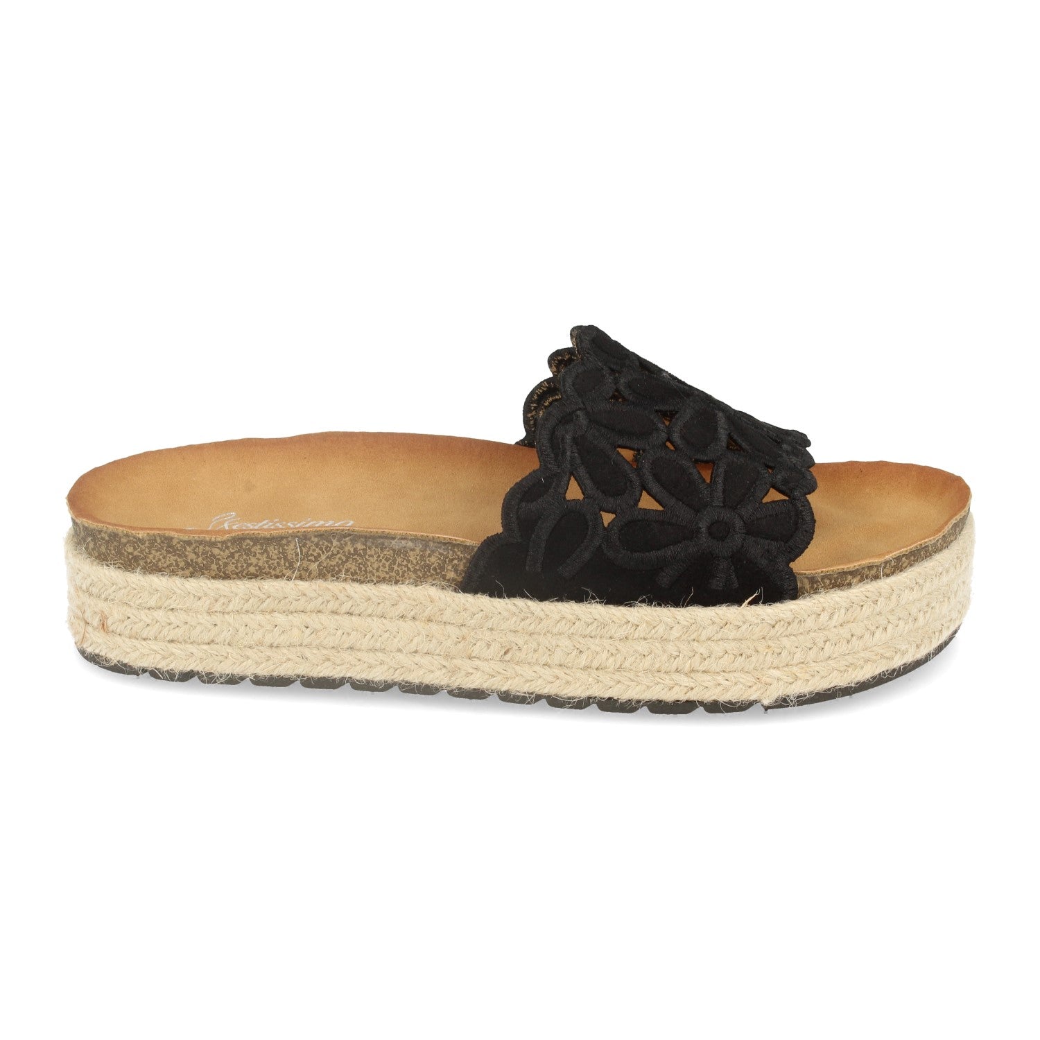 Sandalia de Mujer con Plataforma Pala Decorada de Flores Yute con Piso de Bio y Talon Abierto Primavera Verano 2020