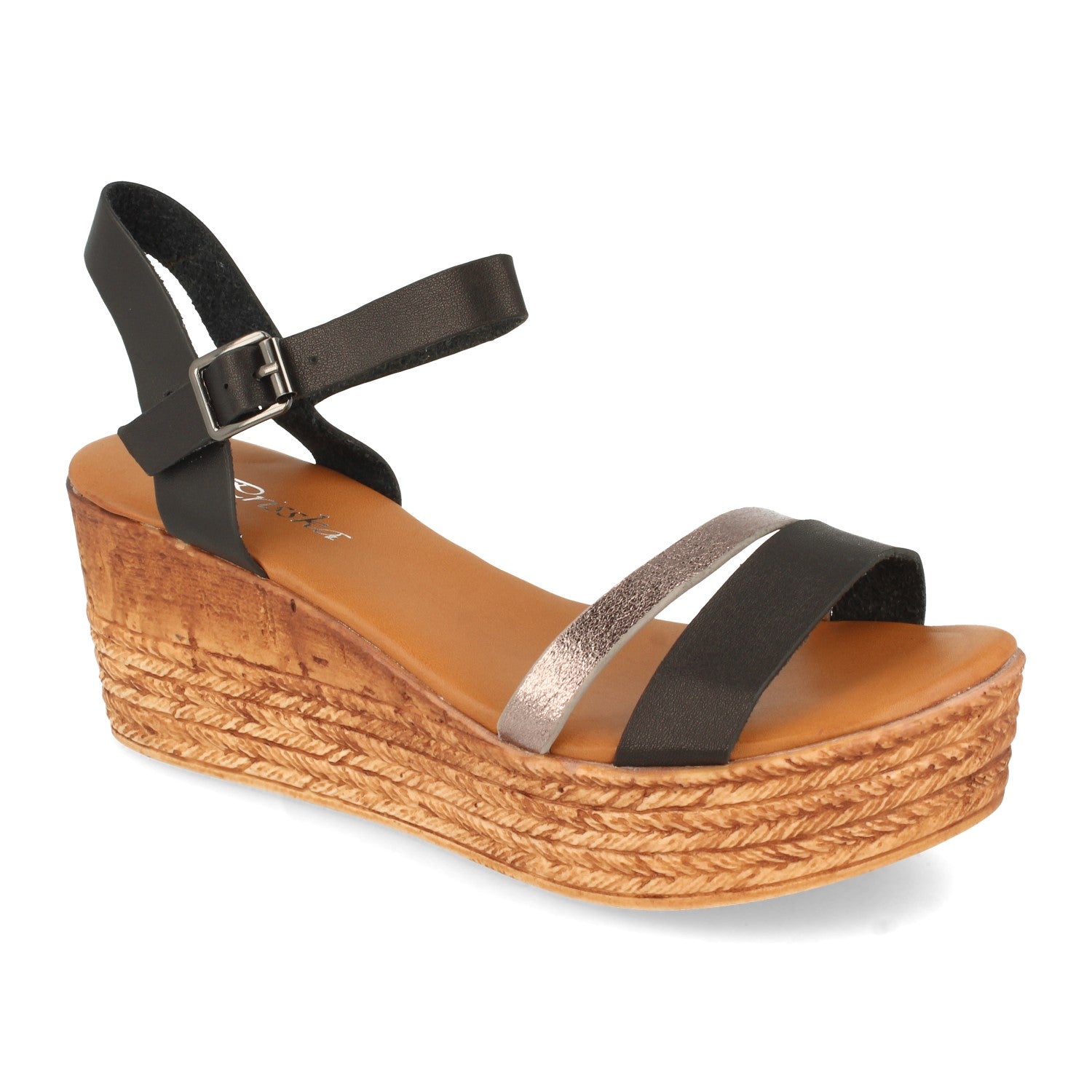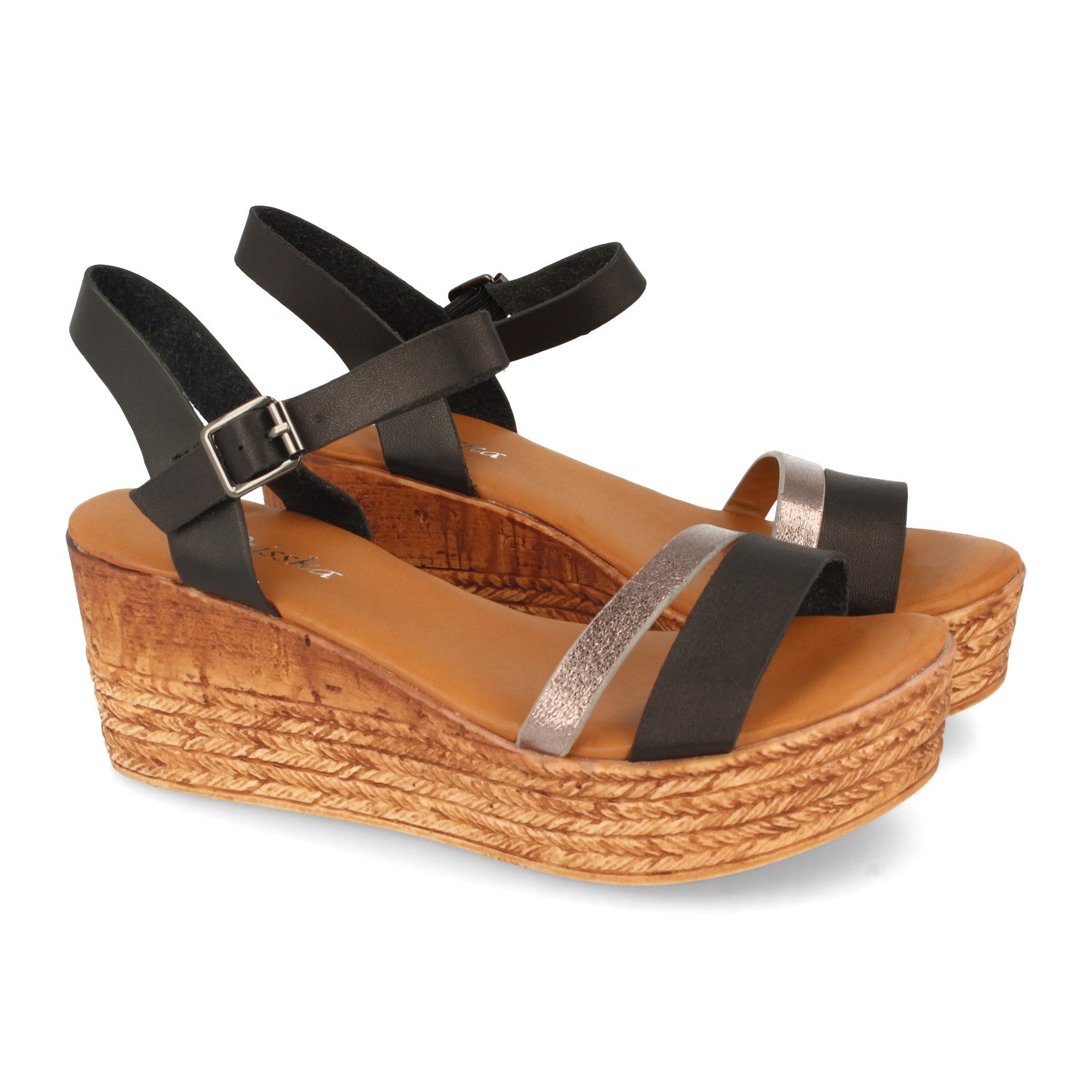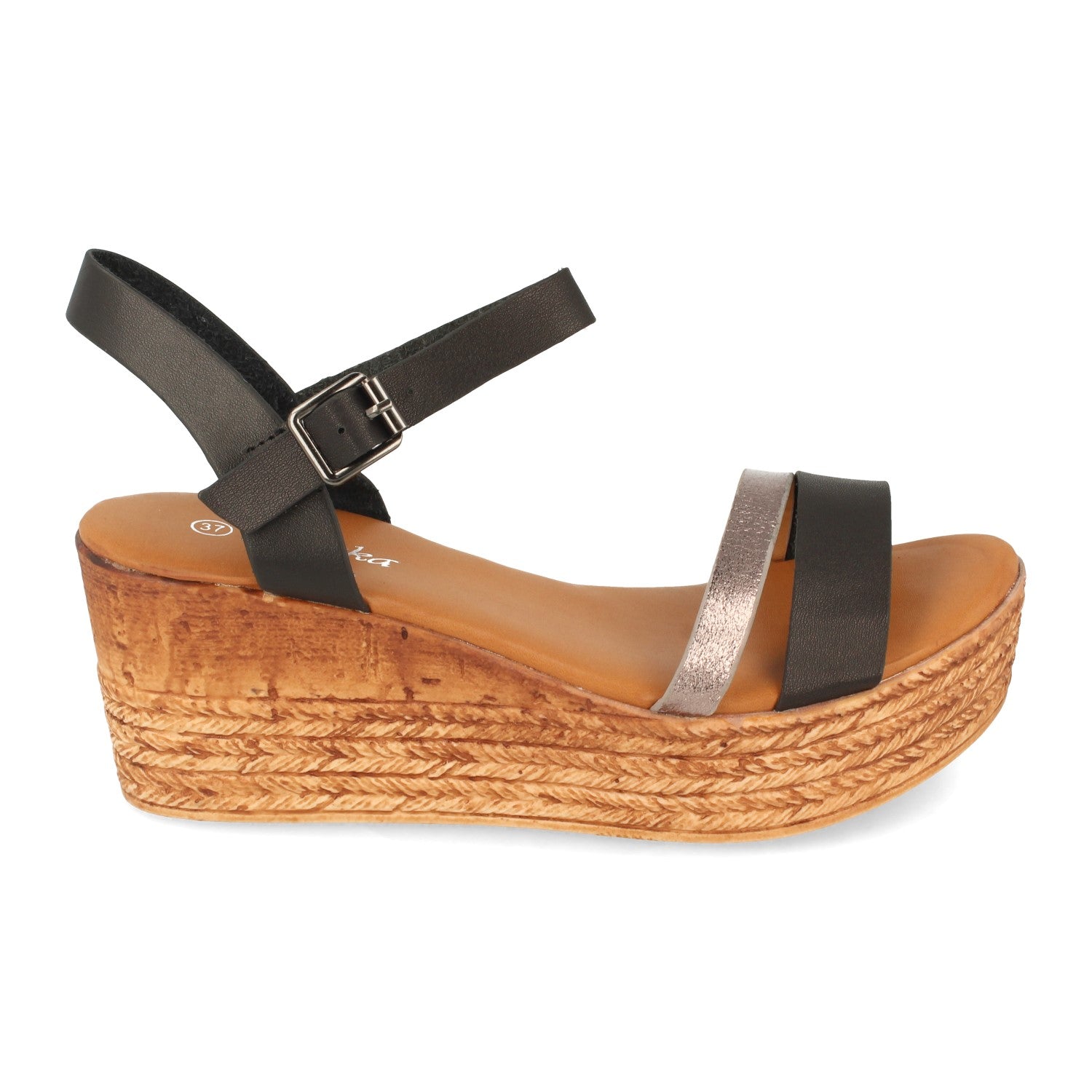 Sandalia de Cuña para Mujer con Falso Yute y Cierre de Hebilla en el Tobillo Primavera Verano 2021