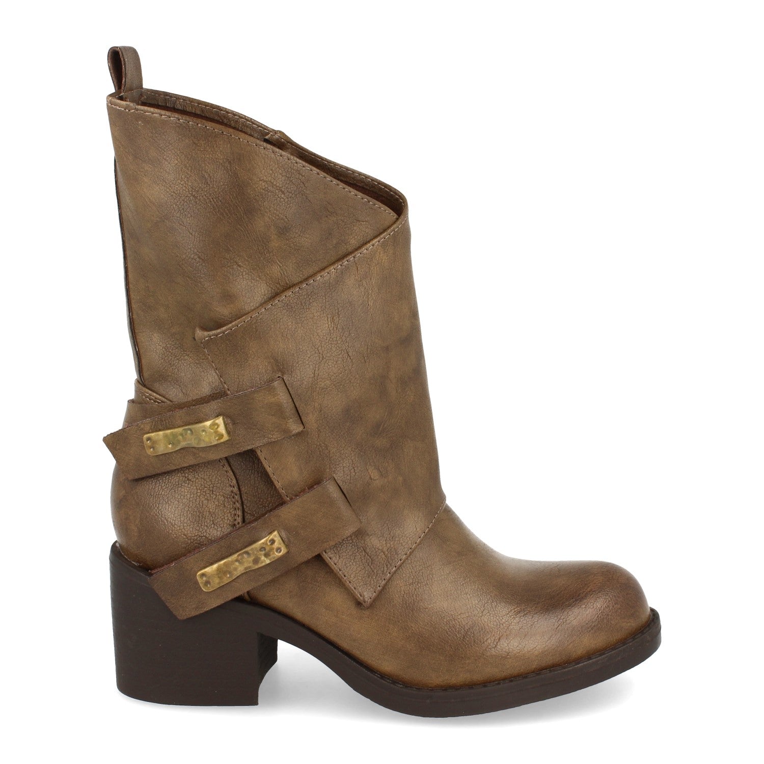 Botin de Tacon Para Mujer Comodos con Estampado Liso Adornos Metalicos y sin Cierre Otoño Invierno 2020