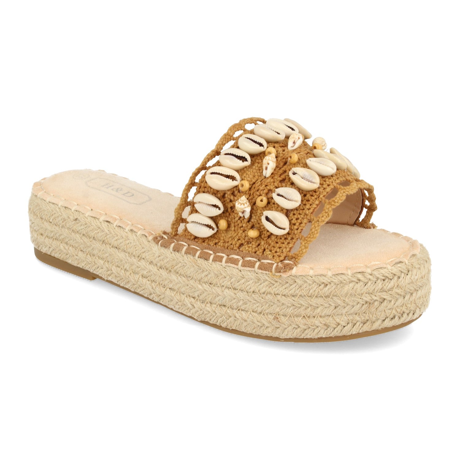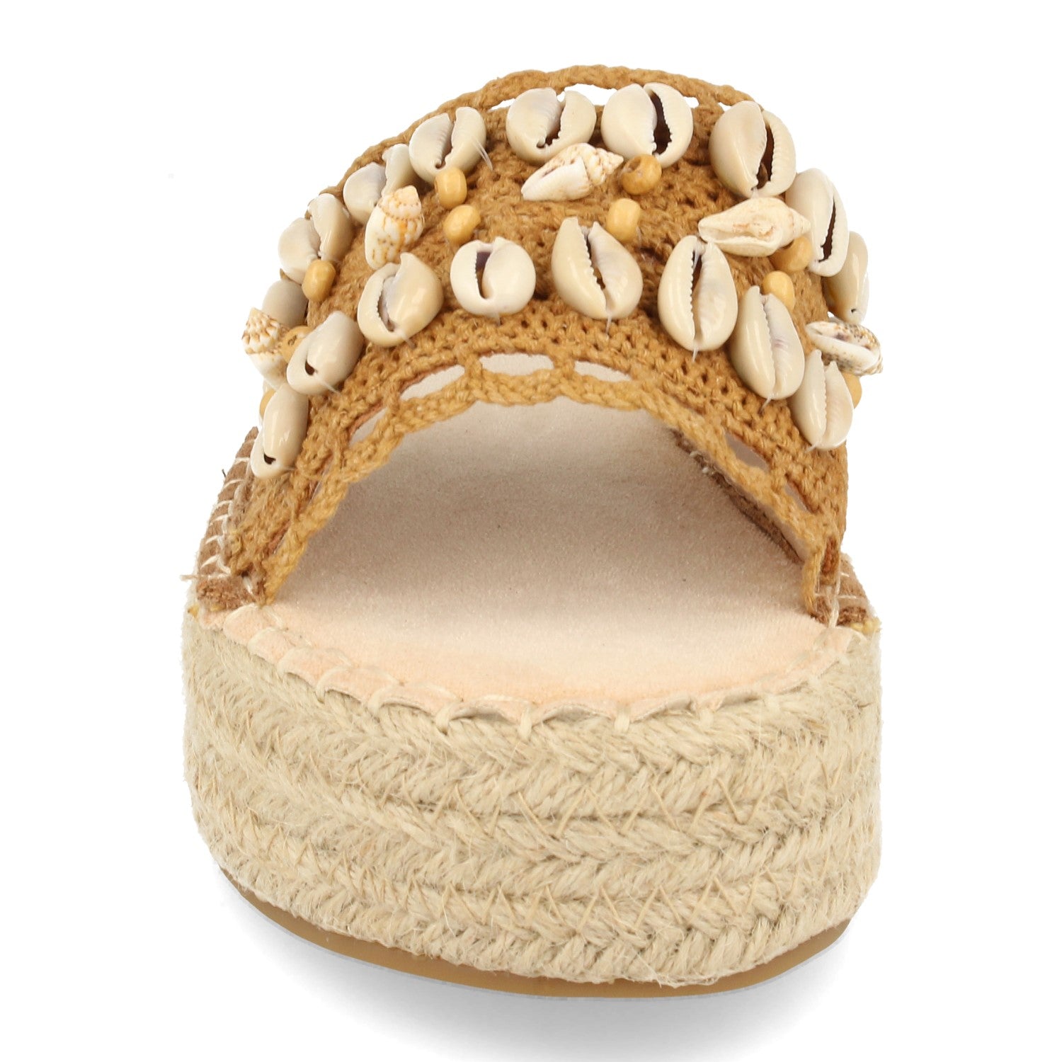 Sandalia de Plataforma para Mujer con Yute Pala Ancha Adornada con Conchas Talon Abierto Primavera Verano 2020
