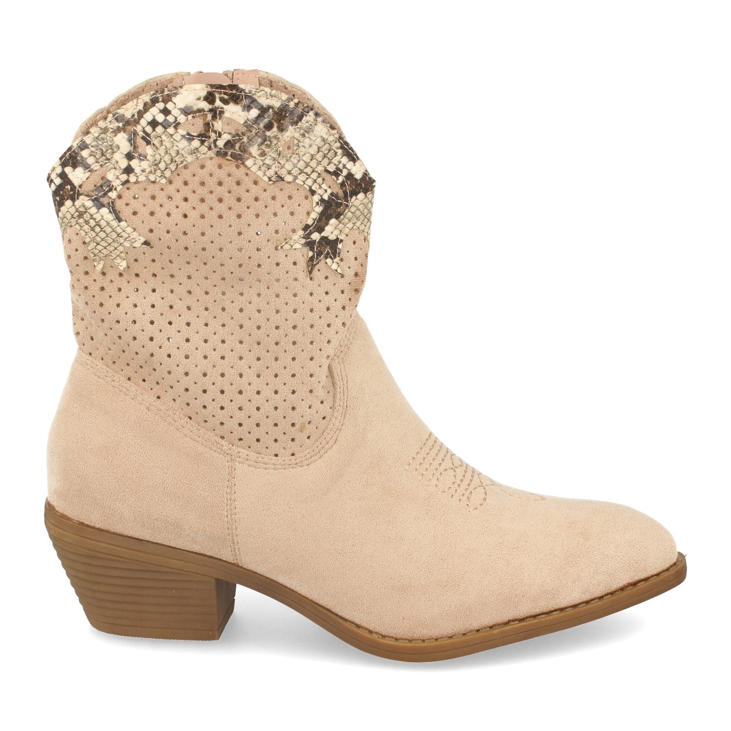 Botin de Tacón Campero con Cosido en Empeine Calados en Caña Grabado de Serpiente en la Parte Superior y Cremallera Primavera Verano 2020