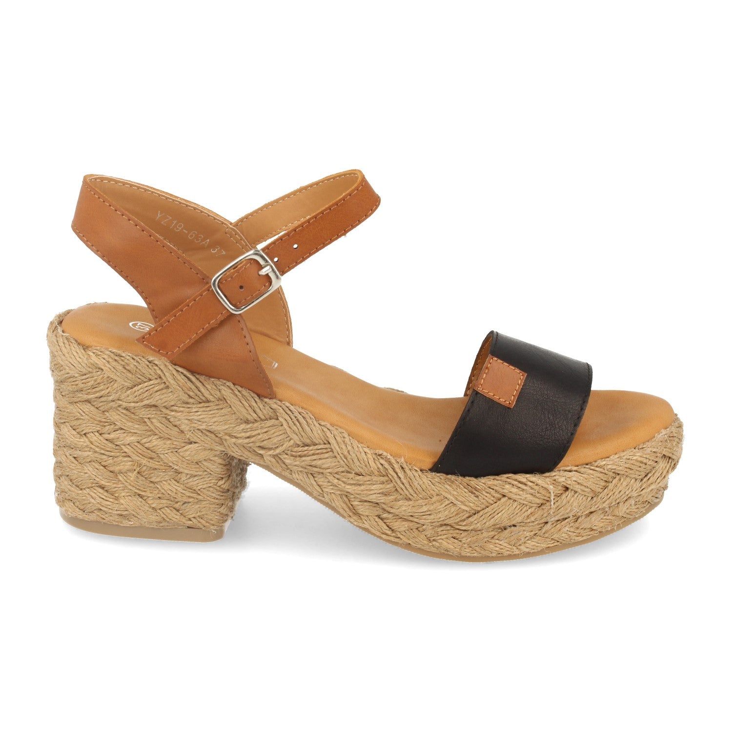 Sandalia con Tacón y Plataforma de Yute Estilo Ankle Strap Adorno en Pala y Cierre de Hebilla Primavera Verano 2020